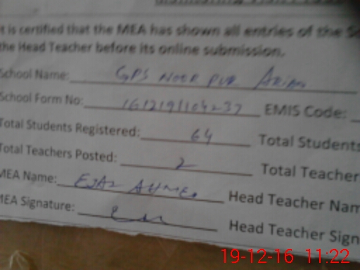| EMIS Code: 35440418 | Name of School: GPS NOOR PUR ARIAN | |||