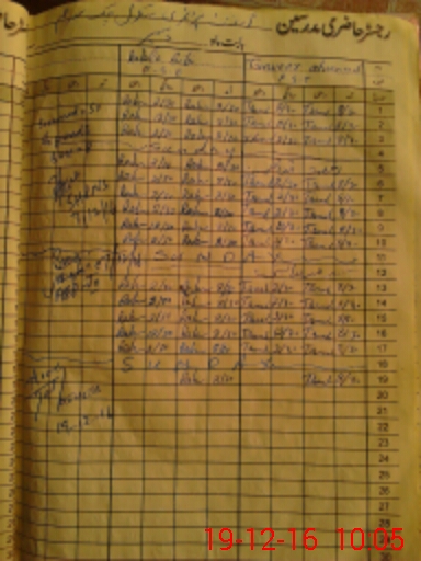 | CNIC | Full Name | Designation | R/C | Absence During Last Calender Month |