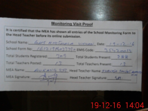 | Attendance Register | Head Teacher | MEA with School | Visit Proof |