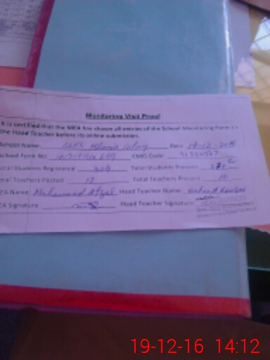 | Certified that this School was Inspected by the Undersigned MEA/DMO Today and the Information Stated Above is as Per Record. | |||||