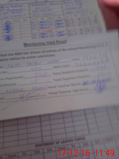 | Attendance Register | Head Teacher | MEA with School | Visit Proof |