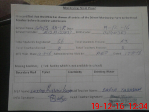 | Certified that this School was Inspected by the Undersigned MEA/DMO Today and the Information Stated Above is as Per Record. | |||||