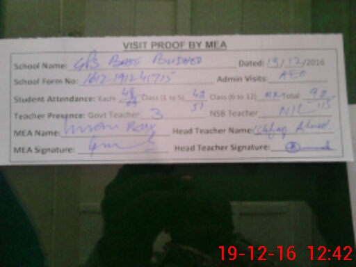 | Attendance Register | Head Teacher | MEA with School | Visit Proof |
