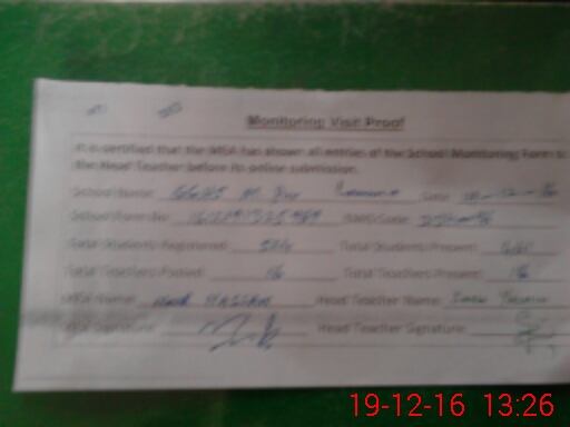 | Attendance Register | Head Teacher | MEA with School | Visit Proof |