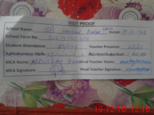 | EMIS Code: 32330791 | Name of School: GPS HAIDER KARAR WALA | |||