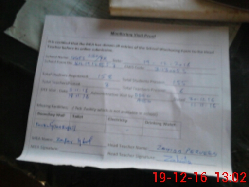 | Attendance Register | Head Teacher | MEA with School | Visit Proof |