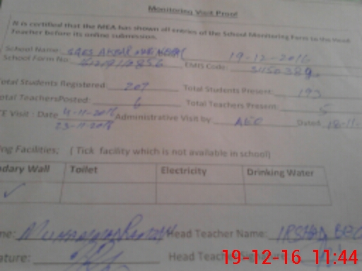 | Certified that this School was Inspected by the Undersigned MEA/DMO Today and the Information Stated Above is as Per Record. | |||||