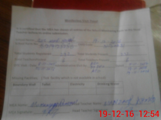 | Certified that this School was Inspected by the Undersigned MEA/DMO Today and the Information Stated Above is as Per Record. | |||||