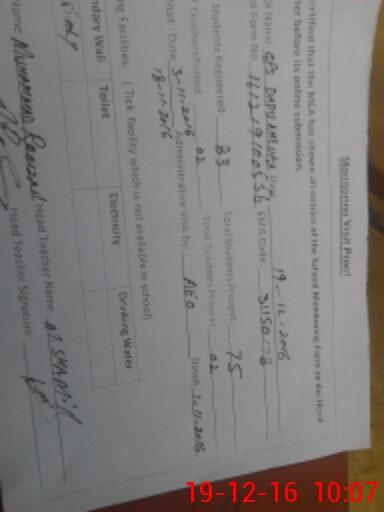 | Certified that this School was Inspected by the Undersigned MEA/DMO Today and the Information Stated Above is as Per Record. | |||||