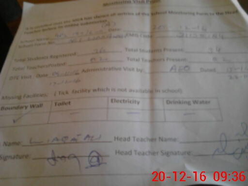 | Attendance Register | Head Teacher | MEA with School | Visit Proof |