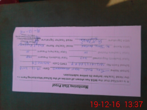 | Attendance Register | Head Teacher | MEA with School | Visit Proof |