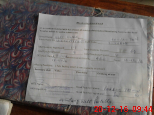 | Attendance Register | Head Teacher | MEA with School | Visit Proof |