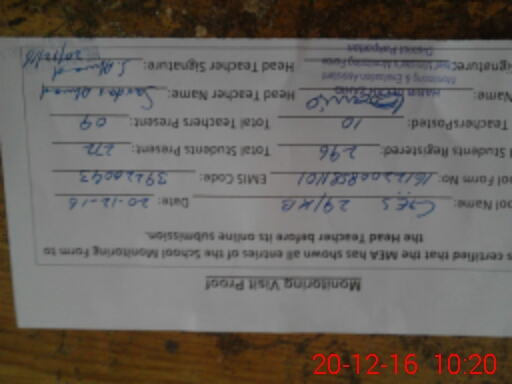 | Certified that this School was Inspected by the Undersigned MEA/DMO Today and the Information Stated Above is as Per Record. | |||||