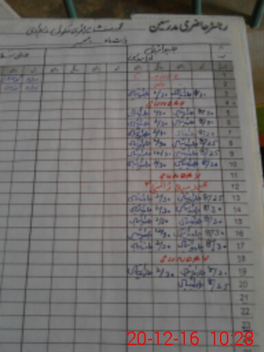 | CNIC | Full Name | Designation | R/C | Absence During Last Calender Month |