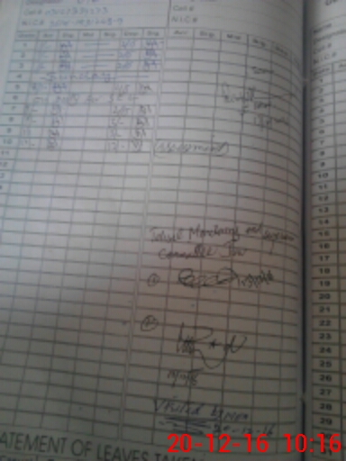 | CNIC | Full Name | Designation | R/C | Absence During Last Calender Month |