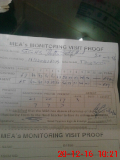 | Attendance Register | Head Teacher | MEA with School | Visit Proof |