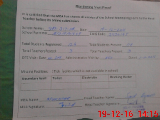 | Certified that this School was Inspected by the Undersigned MEA/DMO Today and the Information Stated Above is as Per Record. | |||||