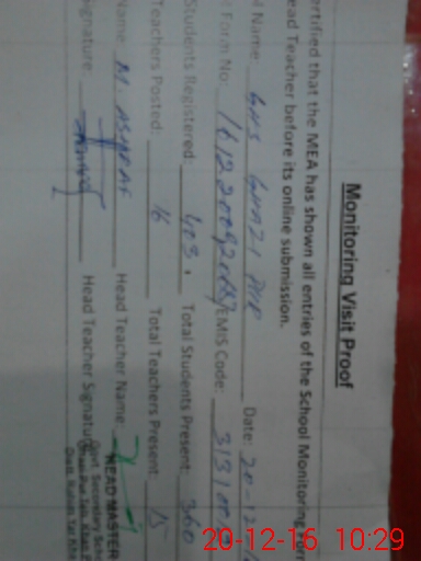| EMIS Code: 31310012 | Name of School: GHS GHAZI PUR | |||