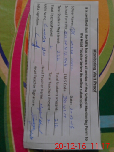 | Certified that this School was Inspected by the Undersigned MEA/DMO Today and the Information Stated Above is as Per Record. | |||||