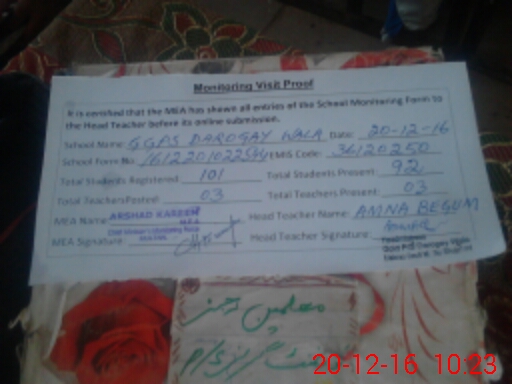 | EMIS Code: 36120250 | Name of School: GGPS DAROGAY WALA SHUJABAD | |||