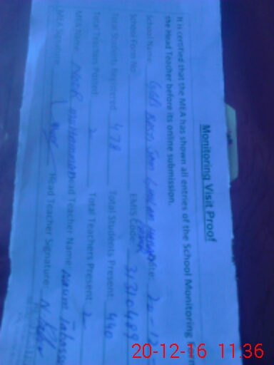 | Certified that this School was Inspected by the Undersigned MEA/DMO Today and the Information Stated Above is as Per Record. | |||||