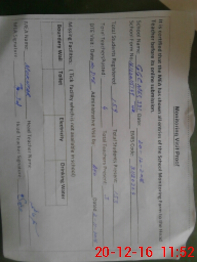 | Certified that this School was Inspected by the Undersigned MEA/DMO Today and the Information Stated Above is as Per Record. | |||||
