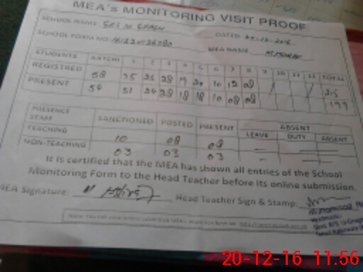 | Attendance Register | Head Teacher | MEA with School | Visit Proof |