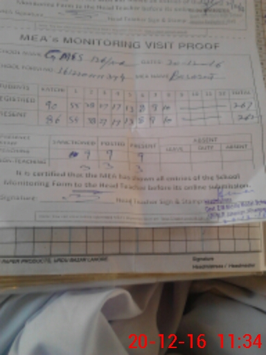 | Attendance Register | Head Teacher | MEA with School | Visit Proof |