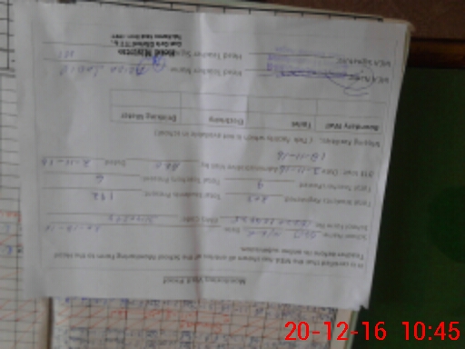 | Monitoring Date: 20-12-2016 | Start Time: 20-12-2016 10:12 AM | End Time: 20-12-2016 10:47 AM | Name of MEA: Za**** BN**** | |
