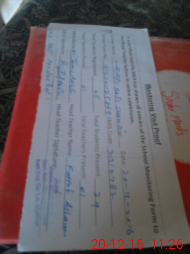 | Attendance Register | Head Teacher | MEA with School | Visit Proof |
