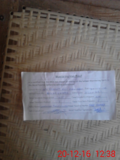 | Attendance Register | Head Teacher | MEA with School | Visit Proof |