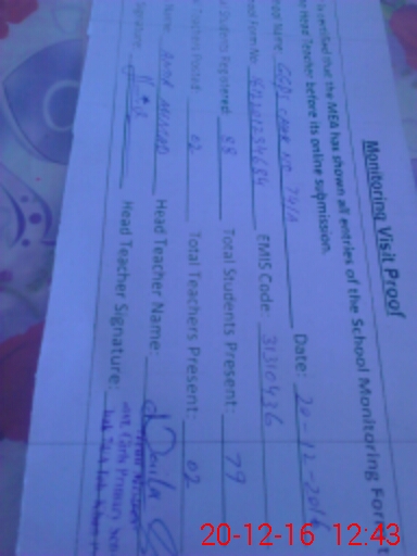 | Attendance Register | Head Teacher | MEA with School | Visit Proof |