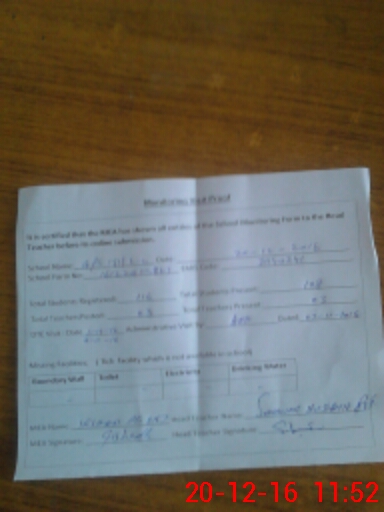 | Attendance Register | Head Teacher | MEA with School | Visit Proof |