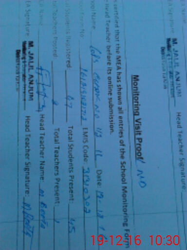 | Certified that this School was Inspected by the Undersigned MEA/DMO Today and the Information Stated Above is as Per Record. | |||||