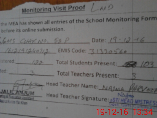 | Attendance Register | Head Teacher | MEA with School | Visit Proof |