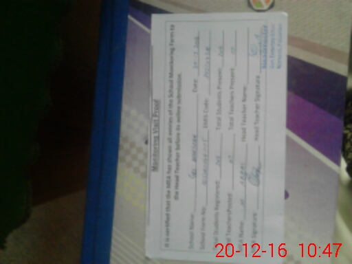 | Attendance Register | Head Teacher | MEA with School | Visit Proof |