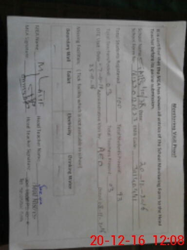 | Attendance Register | Head Teacher | MEA with School | Visit Proof |