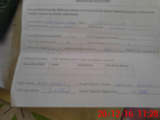 | Certified that this School was Inspected by the Undersigned MEA/DMO Today and the Information Stated Above is as Per Record. | |||||