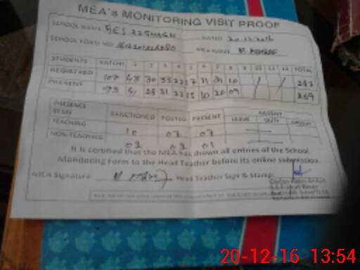 | Attendance Register | Head Teacher | MEA with School | Visit Proof |