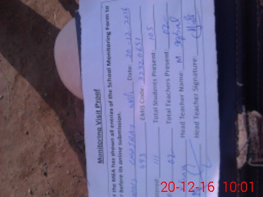 | Attendance Register | Head Teacher | MEA with School | Visit Proof |