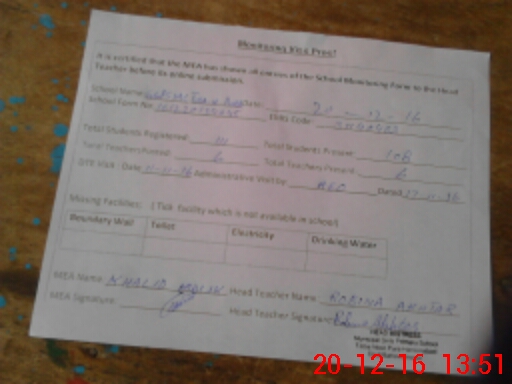 | Attendance Register | Head Teacher | MEA with School | Visit Proof |