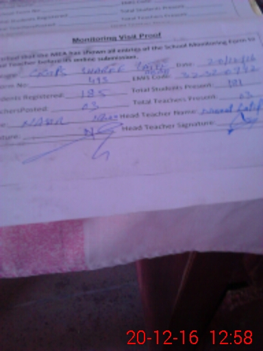 | Attendance Register | Head Teacher | MEA with School | Visit Proof |