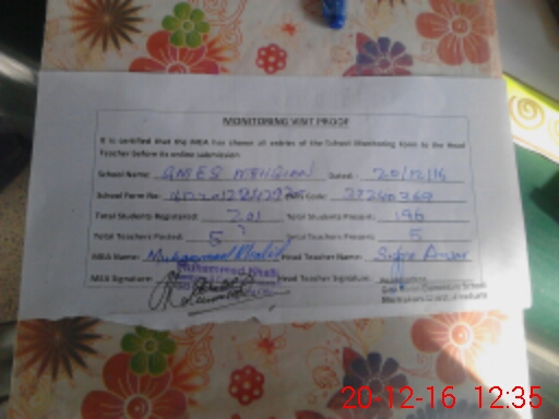 | Certified that this School was Inspected by the Undersigned MEA/DMO Today and the Information Stated Above is as Per Record. | |||||