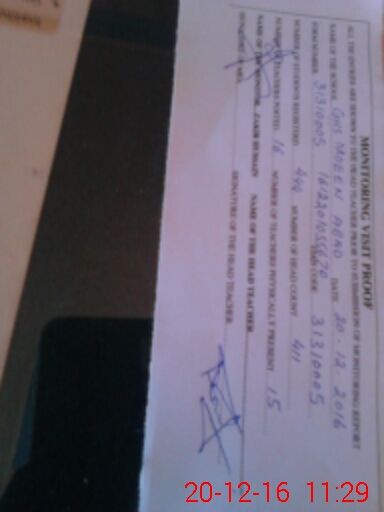| Monitoring Date: 20-12-2016 | Start Time: 20-12-2016 10:55 AM | End Time: 20-12-2016 11:30 AM | Name of MEA: Za**** Hu**** | |