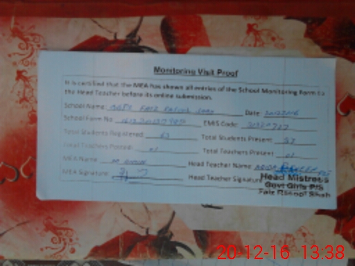 | Certified that this School was Inspected by the Undersigned MEA/DMO Today and the Information Stated Above is as Per Record. | |||||