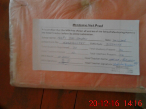 | Attendance Register | Head Teacher | MEA with School | Visit Proof |