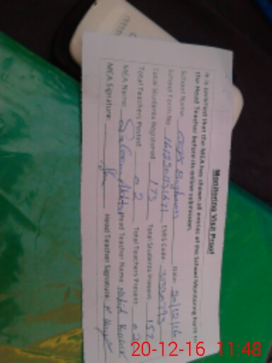 | Attendance Register | Head Teacher | MEA with School | Visit Proof |