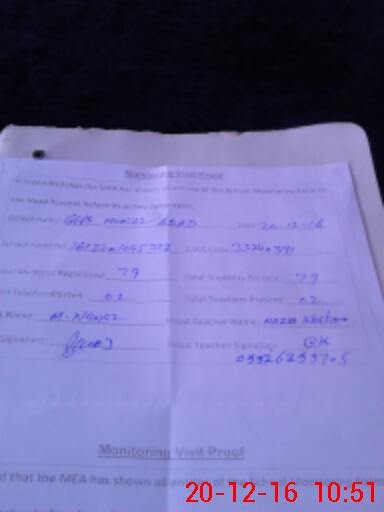| Attendance Register | Head Teacher | MEA with School | Visit Proof |