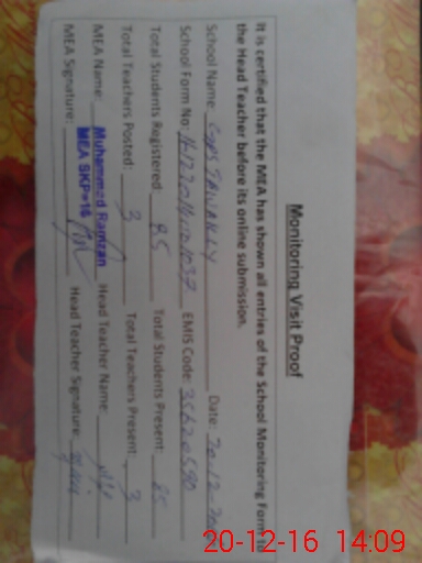 | Certified that this School was Inspected by the Undersigned MEA/DMO Today and the Information Stated Above is as Per Record. | |||||