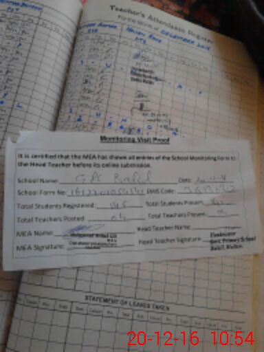 | Attendance Register | Head Teacher | MEA with School | Visit Proof |